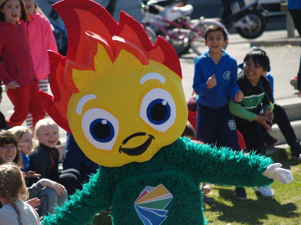 Þar var keppt í hinum ýmsu íþróttagreinum og Blossi, lukkudýr leikanna, heilsaði upp á nemendur í hádeginu. Hann lék á alls oddi eins og hans er von og vísa, stóð á höndum og tók heljarstökk. Vakti hann mikla lukku hjá nemendum.