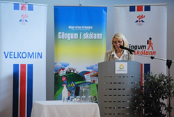 Setningarathöfn verkefnisins Göngum í skólann var haldin í Norðlingaskóla í morgun.  Aðalbjörg Ingadóttir skólastjóri byrjaði á því að bjóða nemendur og gesti velkomna. Viðar Garðarsson, formaður fagráðs Almenningsíþróttasviðs ÍSÍ tók síðan við, flutti stutt ávarp og stjórnaði dagskrá. Lilja Alfreðsdóttir, mennta- og menningarmálaráðherra hvatti nemendur til að vera virk í lífinu og vera dugleg að hreyfa sig. Því næst kenndi Svandís Svavarsdóttir, heilbrigðisráðherra nemendum að segja “Göngum í skólann” á táknmáli og vakti það mikla lukku. Næstur tók Ásmundur Einar Daðason, félags- og barnamálaráðherra til máls og hvatti hann nemendur til að vera dugleg að hjóla eða ganga í skólann og draga foreldrana með sér. Því næst tók Guðmundur Ásgeirsson, aðstoðaryfirlögregluþjónn til máls og minnti krakkana á að lögreglan er til staðar fyrir alla og hvatti hann þau einnig til að gleyma aldrei hjálminum þegar hjólað er. Að lokum hvatti Jón Gunnar Jónsson, forstjóri Samgöngustofu nemendur og gesti til að velja öruggustu leiðirnar í og úr skóla. Sirkus Íslands skemmti svo viðstöddum áður en aðstandendur verkefnisins, ráðherrar, aðstoðaryfirlögreglustjóri, forstjóri Samgöngustofu, nemendur, starfsfólk og aðrir gestir gengu verkefnið formlega af stað.