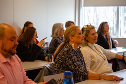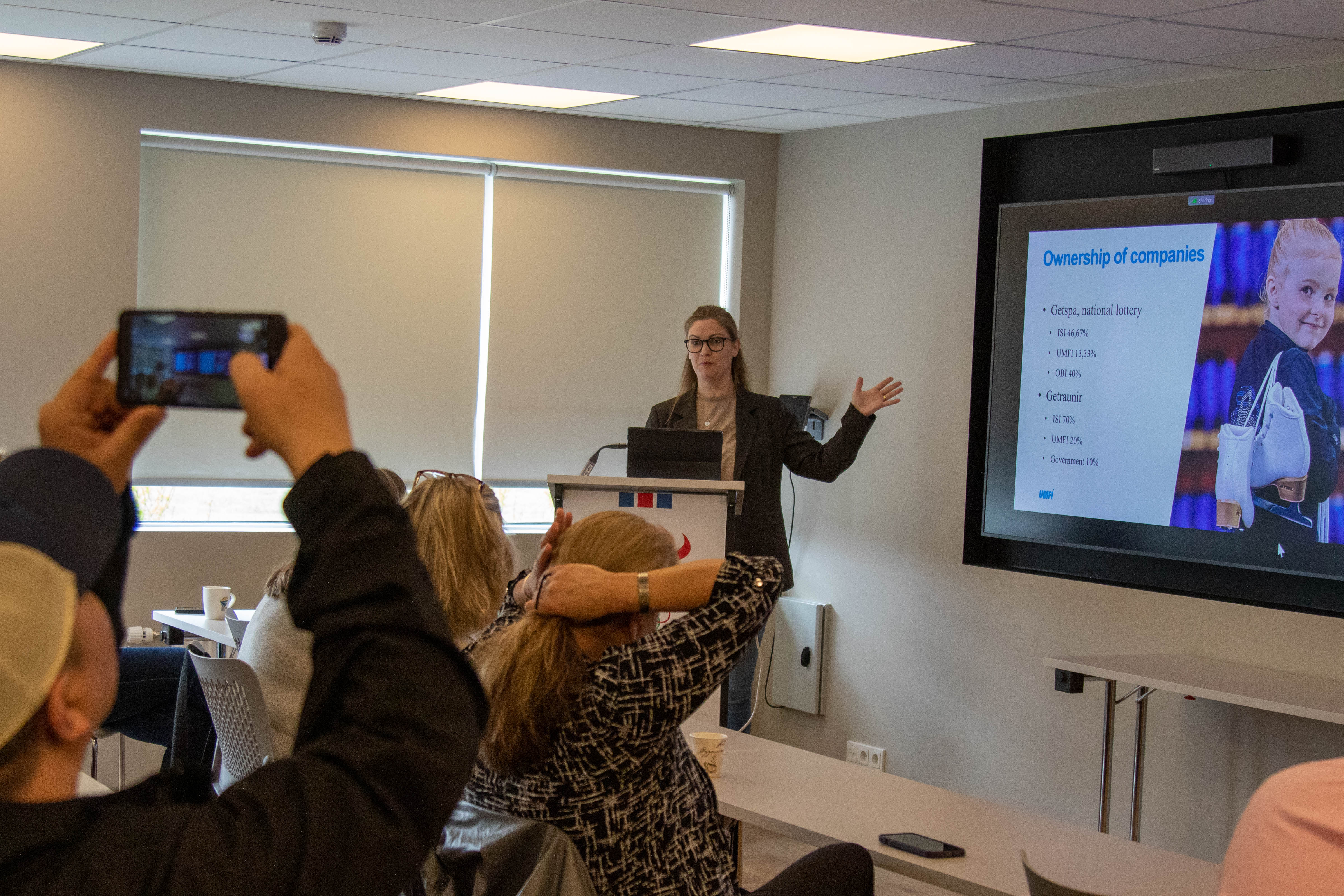 Ragnhildur Skúladóttir, sviðsstjóri Fræðslu- og almenningsíþróttasviðs ÍSÍ, og Auður Inga Þorsteinsdóttir, framkvæmdastjóri UMFÍ, tóku á móti hópnum og héldu erindi um íþróttahreyfinguna, sérstöðu íþrótta barna og unglinga, Ánægjuvogina sem Rannsóknir og greining framkvæmir fyrir ÍSÍ og UMFÍ. Auður fjallaði svo um skipulag íþróttahreyfingarinnar, áherslur UMFÍ ásamt verkefnum þess, samstarfi og stuðningi við sambandsaðila.