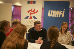 ÍSÍ og UMFÍ stóðu að viðburðinum í samstarfi við ungmennaráð UMFÍ og svæðisstöð íþróttahéraðanna á Austurlandi. Karen Hulda Finnsdóttir, fulltrúi í Ungmennaráði UMFÍ, tók þátt í fundinum.